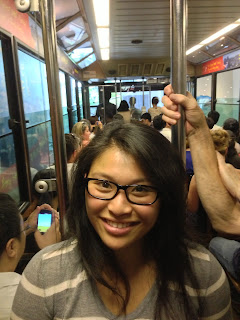 I was taking the rollercoaster trolley (I have no idea what to call it) up to The Peak! This is like a San Francisco Cable car where it's pulled by cables up a steep mountain!